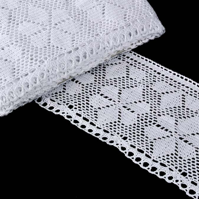 Якісне мереживо вироблене на коклюшних машинах з високоякісної бавовняної мерсеризованої пряжі. Це мереживо підходить для декорування одягу, костюмів, пошиття аксесуарів для дому, текстильних аплікацій, печворку, креативних витворів, скрапбукінгу, колажів, святкових композицій та флористики.